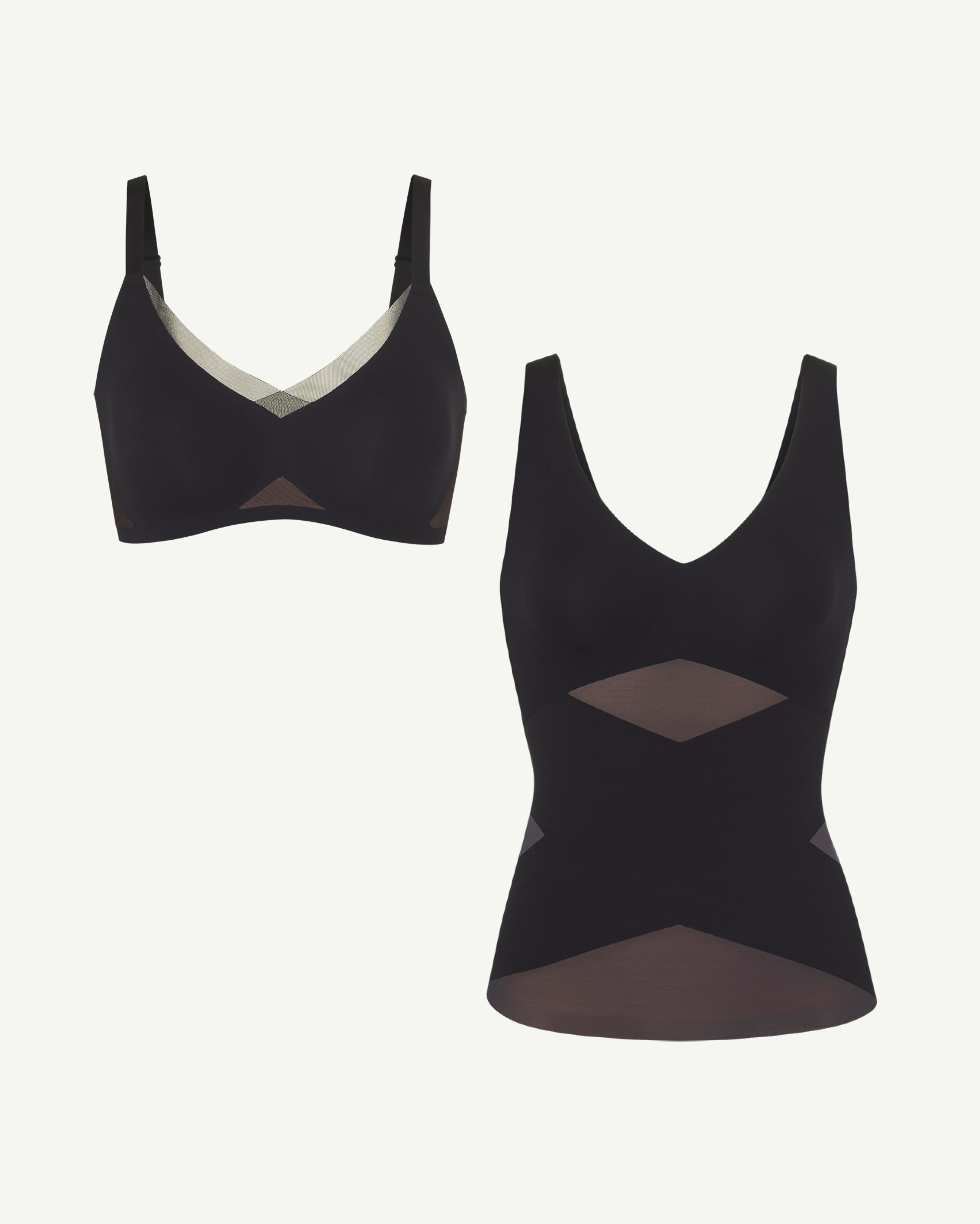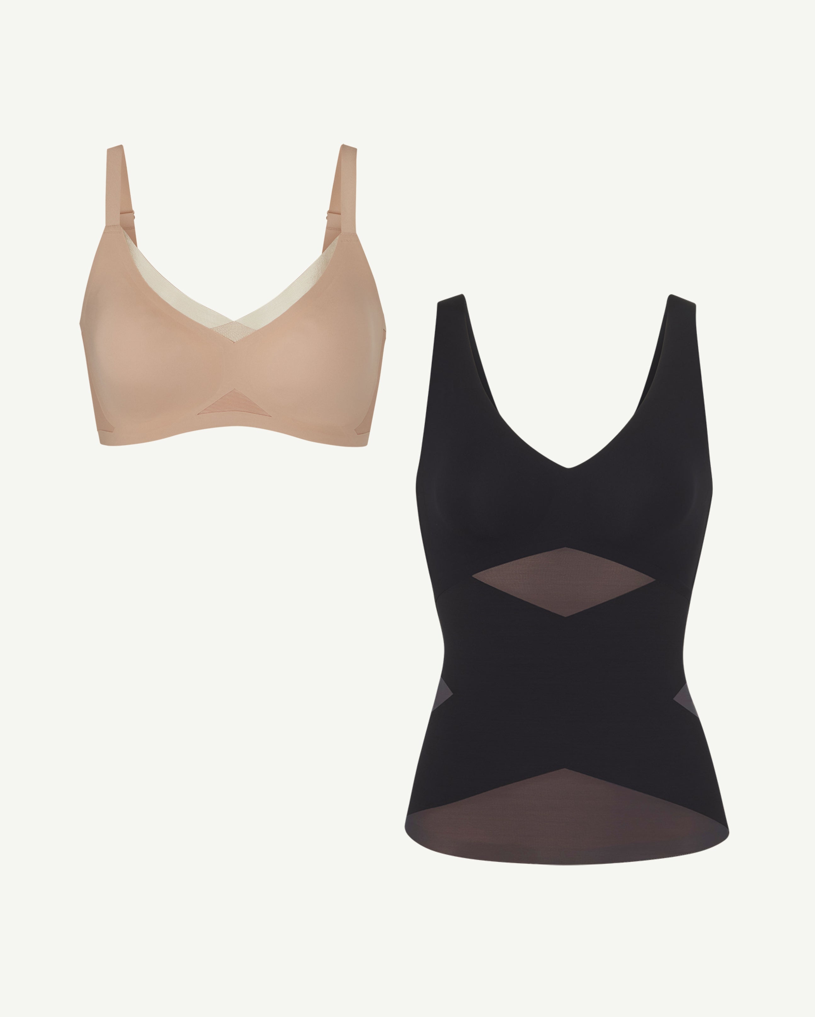 This bundle includes Honeylove’s CrossOver Bra and LiftWear Tank. Buy the CrossOver Bra + LiftWear Tank Bundle and save.