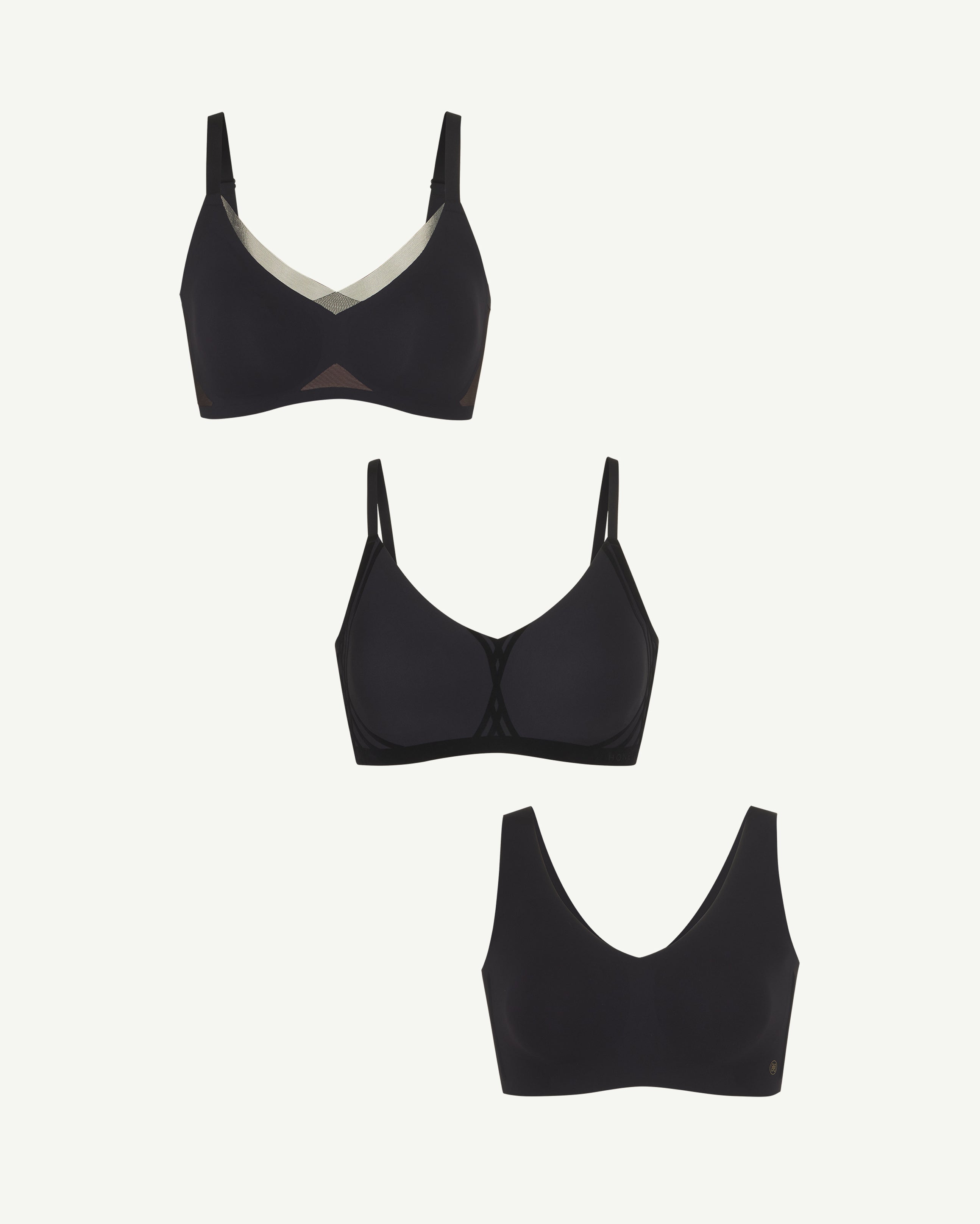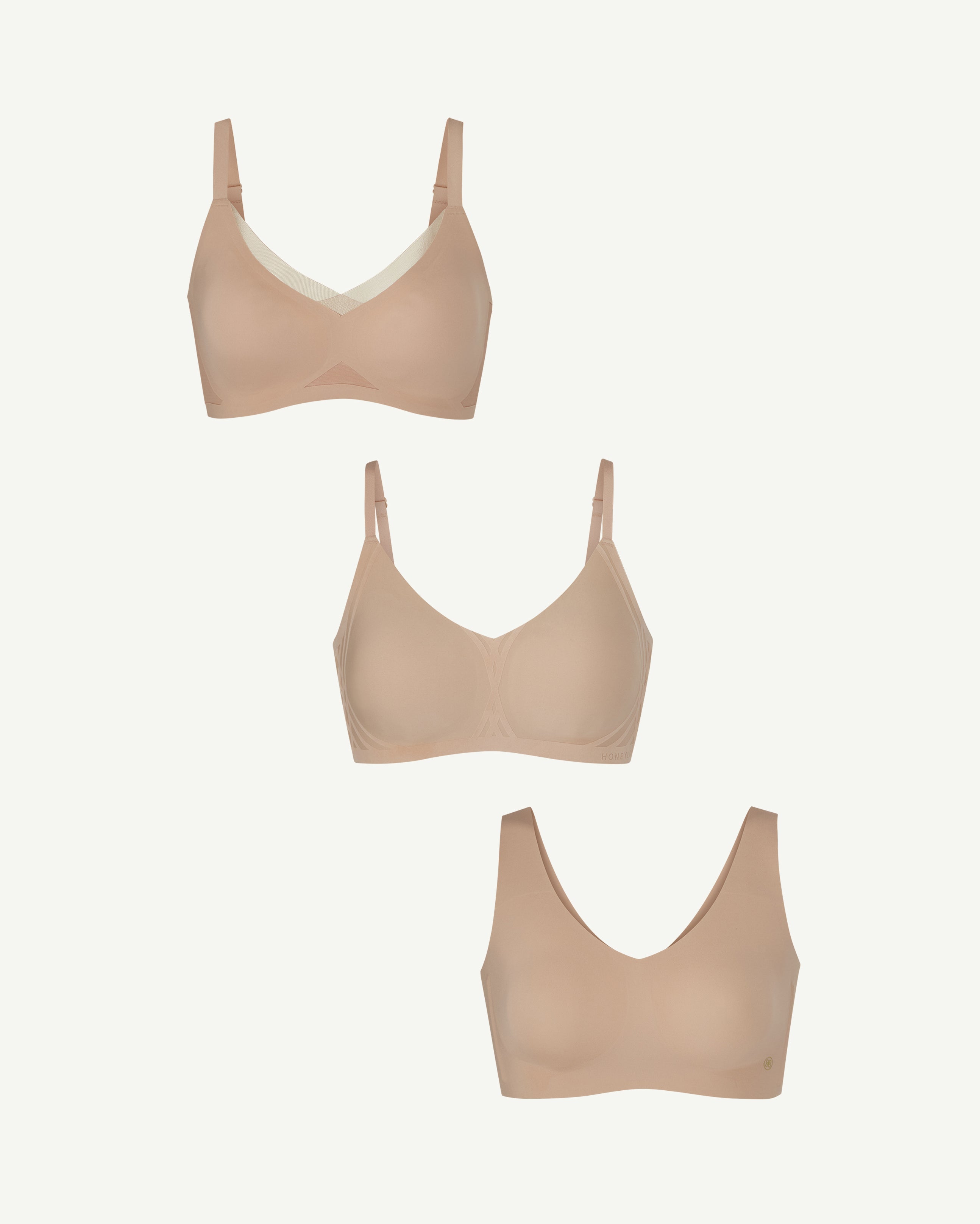 This bundle includes Honeylove’s CrossOver Bra. Silhouette Bra. and SoftForm Bra. Buy the Three Bra Bundle and save.