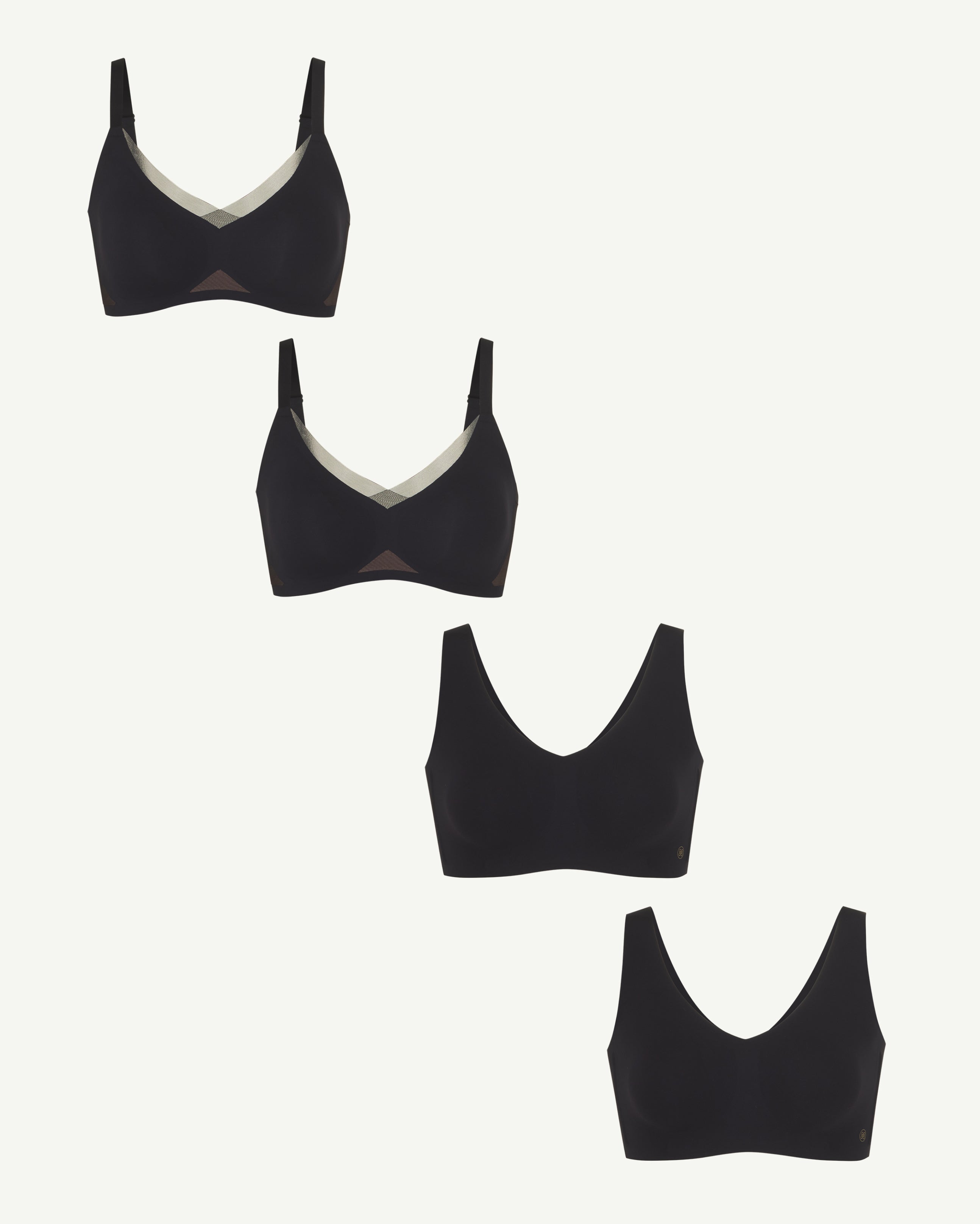 This bundle includes Honeylove’s CrossOver Bra and SoftForm Bra. Buy the Wirefree Bra 4-Pack and save.